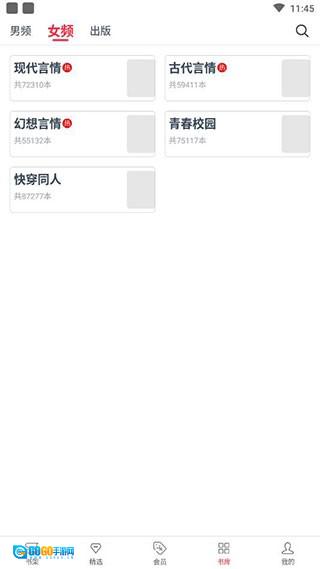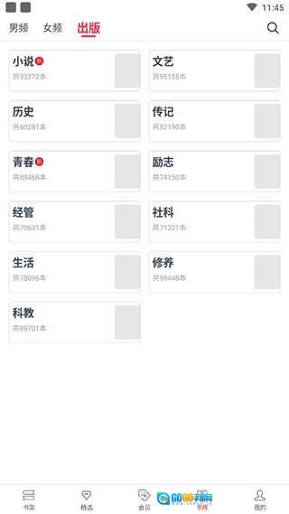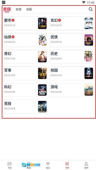 3、在书库中可以发现各种类型的小说,并且带来男频、女频、出版不同的介绍,男频有都市、玄幻、仙侠、武侠等类型;