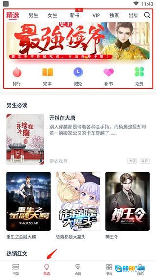 2、进入之后在精选中为大家带来了各类小说推荐,这事就是书荒党的福音之地;