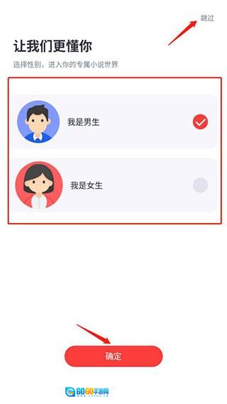 1、安装后打开软件,软件精选男女分类,可以让它更懂你,大家可以选择也可以跳过;