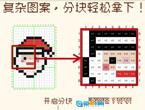 4、着手进行拼接,仅需依据颜色代码挑选对应的像素即可。