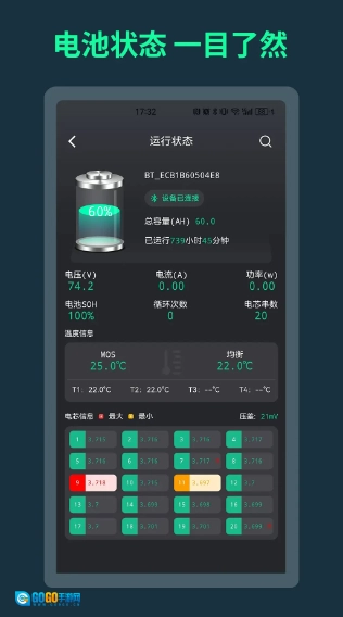BMS软件的核心功能是获取锂电池BMS的相关信息,帮助用户直观掌握电池状态。通过全面了解电池信息,可保障电池稳定运行,让用户更清晰地知晓电池状况,轻松实现电池管理。平台会实时提醒锂电池的异常故障,方便用户及时查看处理,确保电池安全使用;BMS Android版支持用户设置电池系统参数,简单调整参数就能优化使用体验,感兴趣的朋友不妨一试。