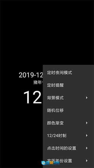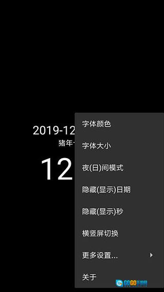 2、支持字体设置、夜间模式切换,还能隐藏具体日期、秒数等信息;