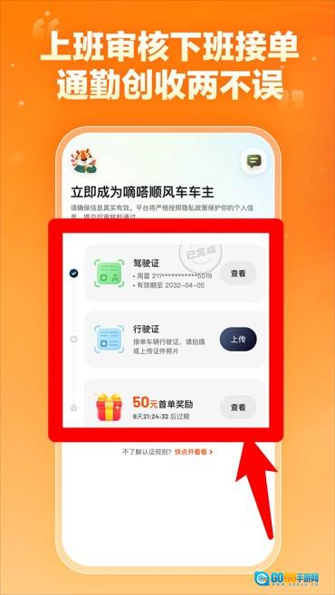 3、上传驾驶证与行驶证以完成认证流程,新车主注册成功后还能领取首单奖励金作为激励。