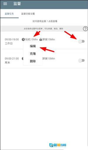 3、使用监督功能时,点击右侧按钮开启监督任务,编辑具体监督时长,开启后可限制玩机时间;