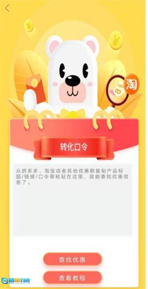 7、转化口令:复制购物分享链接后会自动粘贴,点击查找优惠即可查看返利与优惠信息。