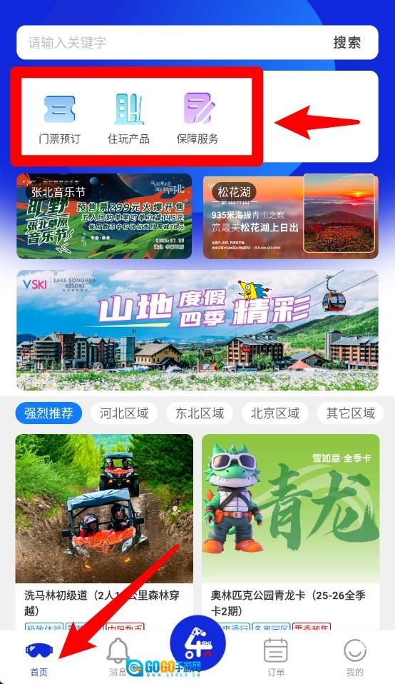 1、首页界面设置了门票预订、住玩产品和保障服务三大入口,用户能够快速进入自己需要的功能页面。