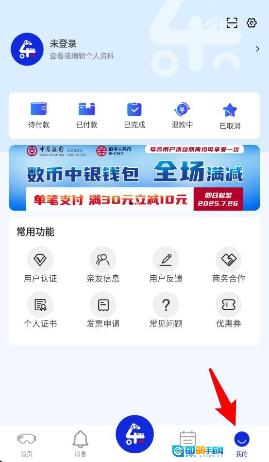 5、我的页面呈现订单状态与常用功能,涵盖实名认证、发票申请以及用户反馈等操作入口。