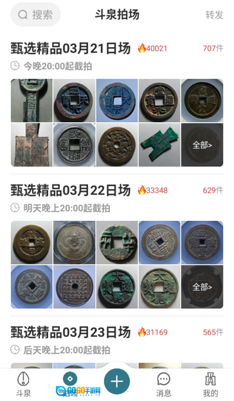 4、这款软件设有专门的拍卖模块,用户能够随时进入拍卖大厅,浏览各类古钱币的拍卖信息。