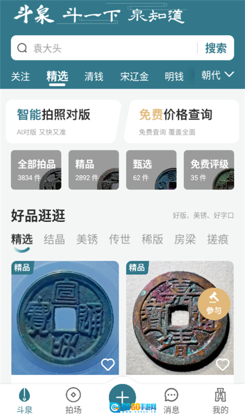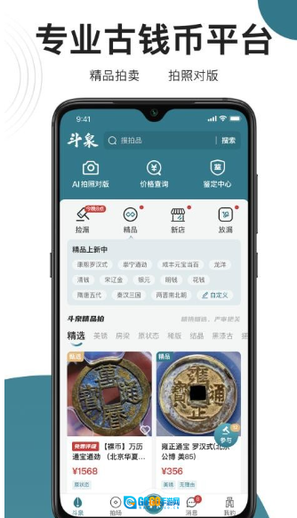斗泉是一个专注于古钱币交易的平台。这款软件为古钱币提供了多种自动照片对准服务,用户在手机上安装后,就能随时精准识别各类古钱币,操作十分便捷。平台内设有古钱币拍卖板块,用户可随时查看或参与竞价,收藏心仪的古钱币。此外,用户还能在软件上与其他爱好者在线互动交流,分享自己收藏的古钱币等内容。