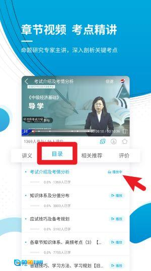 4、点击目录选项卡就能观看各章节的视频课程,专家老师会详细讲解重难点知识,这种学习方式很适合进行系统性的学习。