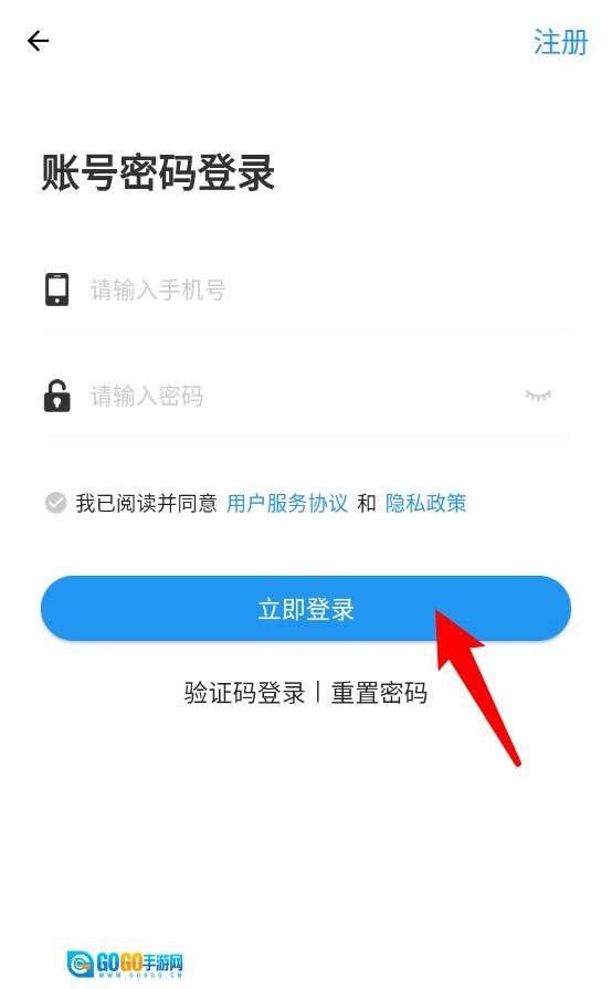1、在登录页面填写手机号和密码,勾选同意相关协议后点击“立即登录”按钮,就能进入应用的首页。