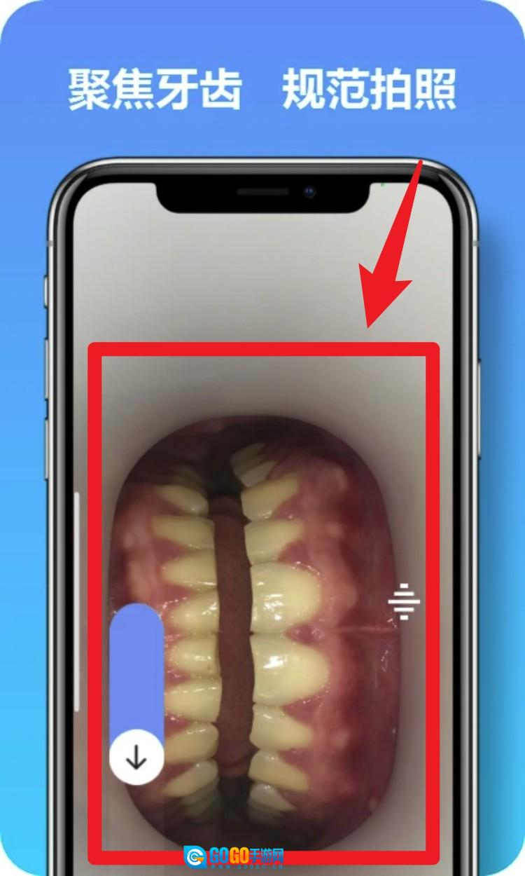 3. 进入拍摄界面后,把镜头对准牙齿,按照屏幕上的提示调整位置,完成拍摄步骤。