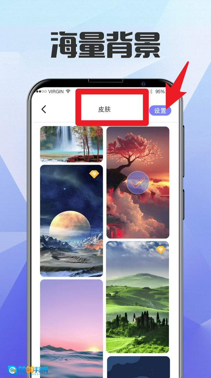 4. 在皮肤设置页面里挑选你心仪的背景图,点击该图片就能完成锁屏界面主题风格的设置,从而打造出专属于你的个性化专注空间。
