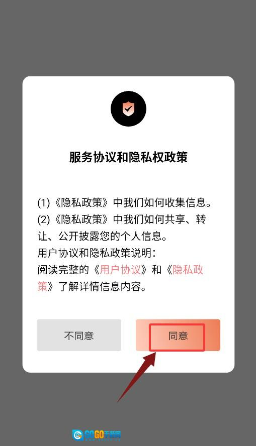 首次开启应用时,需点击确认协议弹窗并同意相关条款,之后才能进入主界面。
