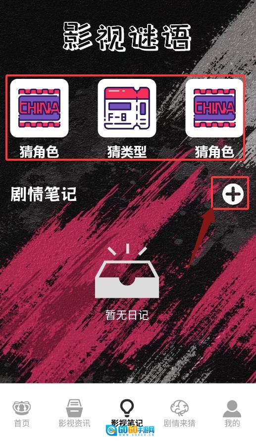 4、在影视笔记界面,用户能够添加剧情笔记,还可以参与猜角色、猜类型的互动活动。