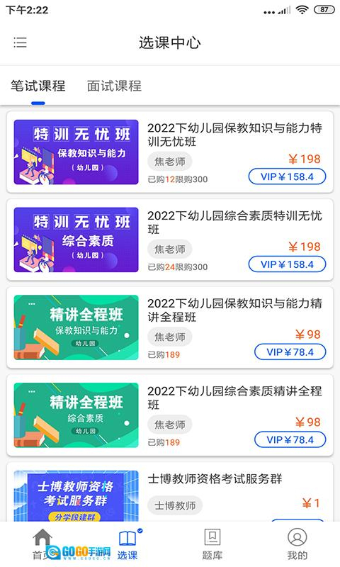 士博网校是一款专注于教师资格证考试辅导的软件,它采用线上教学模式,助力学员备考教师考试。学员可报名参加软件推出的年度教师资格笔试特训无忧班,该课程依托历年考试真题设计教学内容,帮助学员通过系统学习高效通过考试。软件的教学体系涵盖讲、练、考、评四大环节,为考生提供完整的备考闭环。
