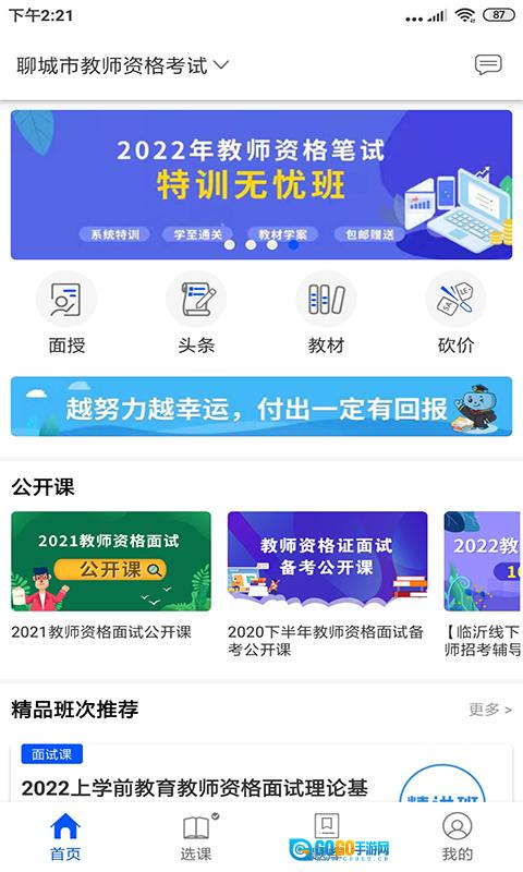 2、点击首页,可以查看面授、头条、公开课等信息。