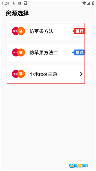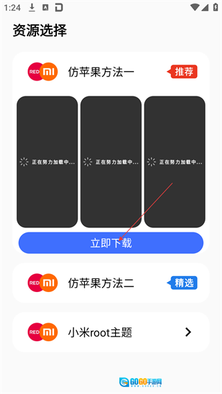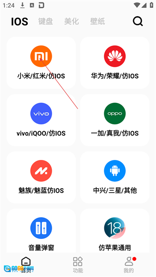 进入应用首页后,选择“小米/红米/仿iOS”这一设备分类,即可进入对应的资源选择页面。