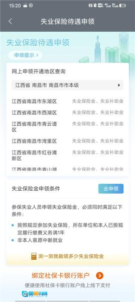 3、查看失业保险金申领条件后,点击去申领。