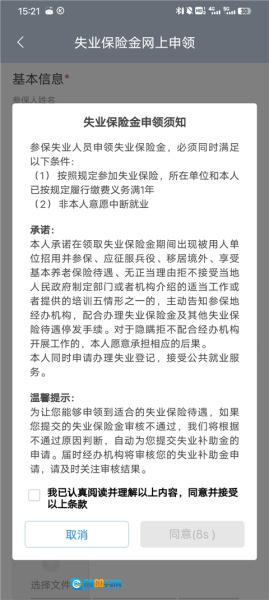 4、然后认真阅读失业保险申领须知: