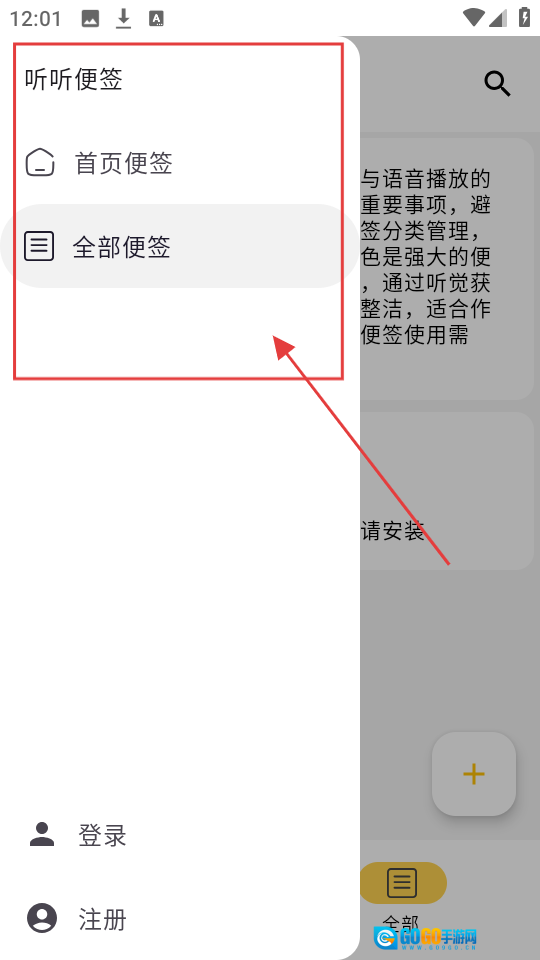 4、点击界面左上角的菜单按钮,可选择【首页便签】或【全部便签】选项,实现快速切换查看,让便签管理变得更轻松便捷。