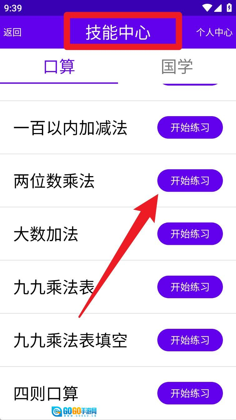 1. 在列表里找到两位数乘法的项目,点击其右侧的开始练习按钮,即可进入练习页面。
