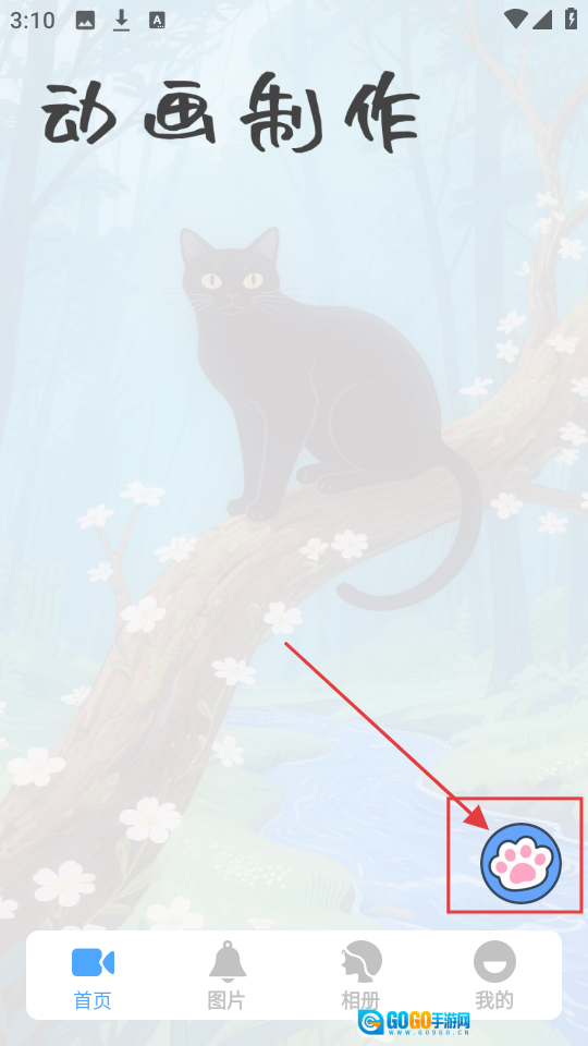 1、首页有可爱猫爪图标,想制作动画,点它进入动画制作设置页,开启创作超棒的。