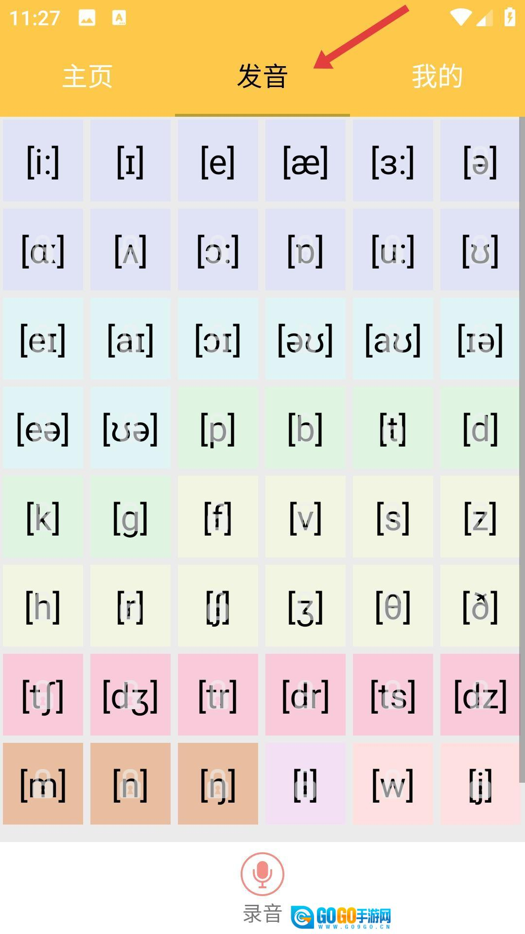 2、发音页面呈现英语国际音标,点击任一音标就能开展学习,同时还提供视频学习等多种训练形式。
