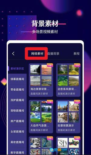 1、打开后,在背景素材页面里,点击需要的场景类别就能快速浏览并挑选各类视频背景素材来使用。