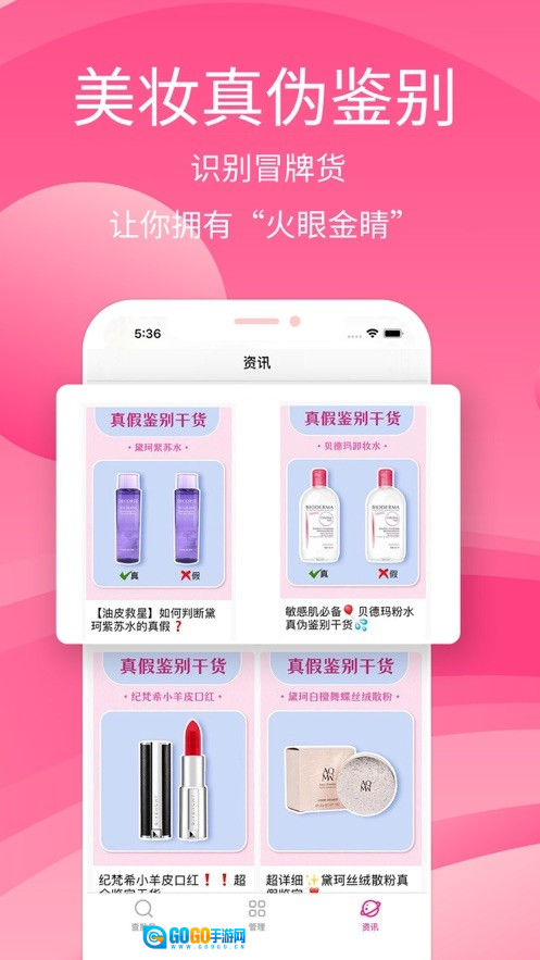 查妆妆是一款化妆品护肤品管理与真假鉴别工具,能查化妆品批号,扫条形码就能鉴定是不是正品,还能提醒护肤品啥时候过期,分析里面的成分,能测自己是什么肤质,这些实用功能都有。想更专业点,拍张照片传上去,就能拿到专业鉴定师给的报告,轻松分清真假,用的每瓶护肤品都能放心,不用担心不安全。