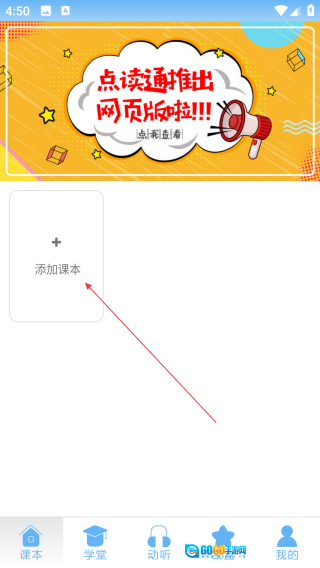 1、打开点读通,点击【添加课本】。