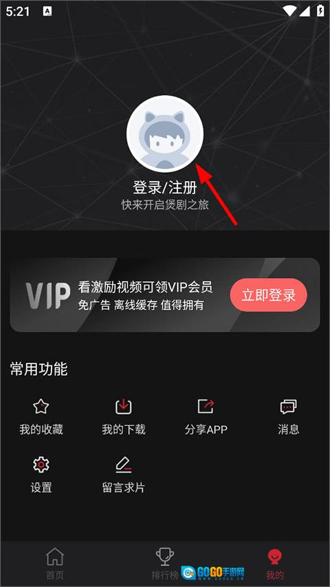 2、打开我的页面,用户点击头像注册/登录;