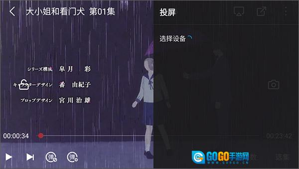 4、点击番剧剧集播放,进入播放页面,点击右上角的电视投屏按钮;