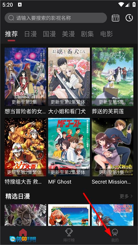 1、用户打开次元喵,进入首页,在首页可查看最新番剧,点击我的;