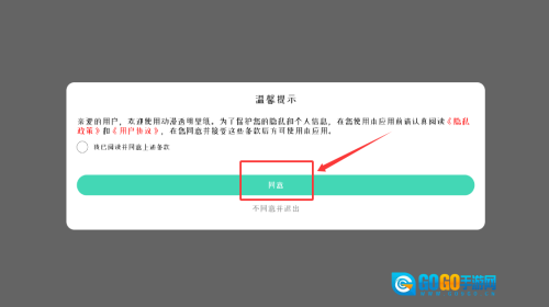 1、点击同意按钮,确认隐私协议并进入。