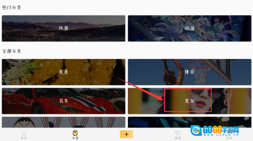 3、在全部分类页,选择美女标签浏览。