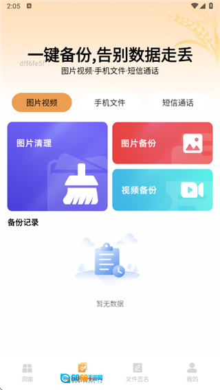 3、打开数据备份页面,图片、视频、短信通话等都可以一键备份。