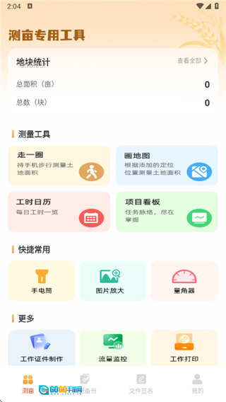 2、再测亩页面,这里提供专用工具,用户可以按需使用。
