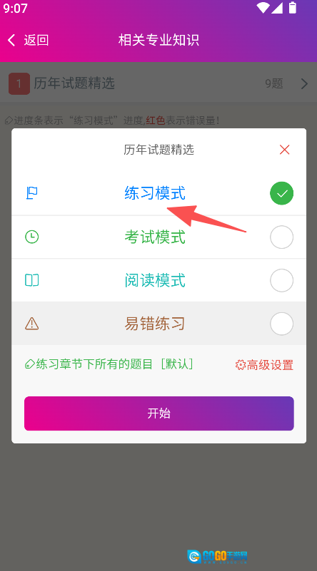 3、具备试题练习功能,用户选定科目与模式后,点击“开始”按钮就能进入试题练习页面。