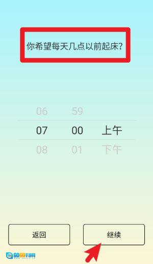 2、接着设定你期望每天最晚起床的时间,只有在这个时间之前顺利起床,建房记录才会被累计留存。