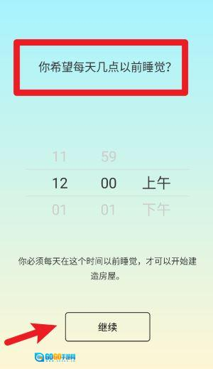1、首先选定你期望每天最晚的入睡时间,系统会以这个时间作为标准,监督你按时睡觉后才允许开始建造房屋。