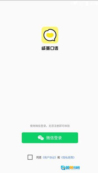 1、打开咸蛋英语口语,进入登录界面,该平台支持微信登录,且使用微信登录无需提前注册账号。