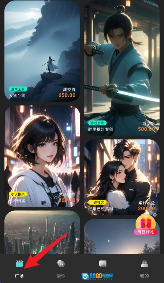 1、广场页面呈现各类图文与剧情作品,可供用户浏览小说推荐、游戏宣发等内容资源。