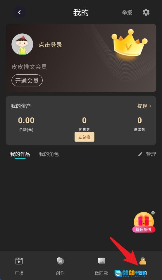 4、点击“我的”进入个人空间,能够查看作品、角色与资产信息,并且支持登录管理账户。