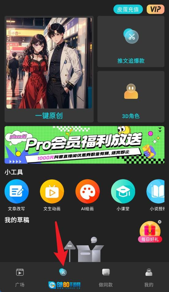 2、创作页面提供文案改写、智能绘画、视频动画等多种工具,一键生成原创作品。