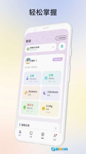 3、健康数据记录: 自动记录并同步宠物体重、进食量、活动轨迹等多维度健康信息。