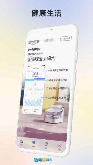 1、打开App连接澎布饮水机,自动同步饮水数据并提醒换芯,帮助猫咪养成良好饮水习惯。