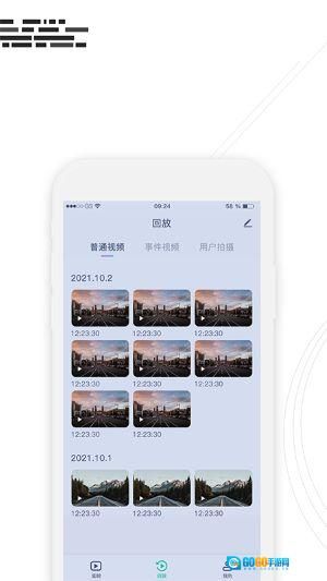 2、回放界面支持按日期浏览录制视频,还能分类查看普通视频、事件视频及用户拍摄内容,便于快速查找所需资料。
