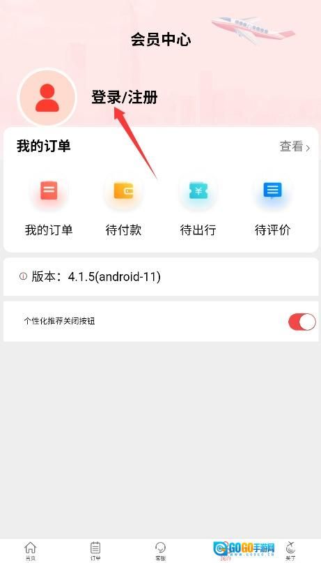 2、进入我的个人中心后,点击左上角的“登录/注册”按钮,即可进入账号验证界面进行登录操作。