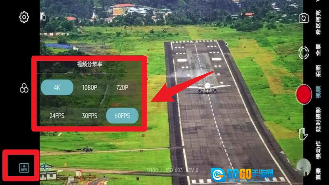 4. 点击分辨率图标后,可对4K/1080P/720P分辨率与24~60FPS帧率进行组合选择,从而自由把控画质与流畅度。
